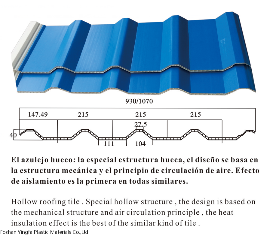 High Quality PVC Hollow Roofing Tiles Advantages: 1.Easy to maintenance PVC material belongs to the antistatic material, it’s not easy to absorb dirty materials, and easy to clean and maintenance.